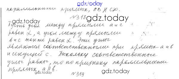 Ответы к §14. Признаки параллельности двух прямых Решение к главе 3. Параллельные прямые. Сумма углов треугольника 318 Учебнику по Геометрии для 7 класса Мерзляк, Полонский Вентана-граф Алгоритм успеха 2017