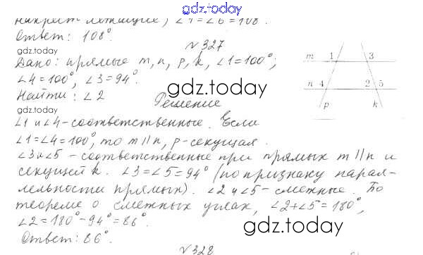 Ответы к §15. Свойства параллельных прямых Решение к главе 3. Параллельные прямые. Сумма углов треугольника 327 Учебнику по Геометрии для 7 класса Мерзляк, Полонский Вентана-граф Алгоритм успеха 2017