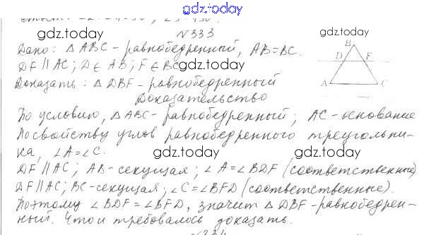 На страницах сайта gdz.today вы найдете учебный и вспомогательный материал, направленный на улучшения знаний школьной программы. ГДЗ - онлайн мир знаний §15. Свойства параллельных прямых Решение к главе 3. Параллельные прямые. Сумма углов треугольника 333 Учебнику по Геометрии для 7 класса Мерзляк, Полонский Вентана-граф Алгоритм успеха 2017