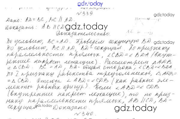 На страницах сайта gdz.today вы найдете учебный и вспомогательный материал, направленный на улучшения знаний школьной программы. ГДЗ - онлайн мир знаний §15. Свойства параллельных прямых Решение к главе 3. Параллельные прямые. Сумма углов треугольника 339 Учебнику по Геометрии для 7 класса Мерзляк, Полонский Вентана-граф Алгоритм успеха 2017