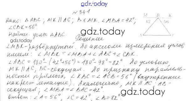 Ответы к §15. Свойства параллельных прямых Решение к главе 3. Параллельные прямые. Сумма углов треугольника 341 Учебнику по Геометрии для 7 класса Мерзляк, Полонский Вентана-граф Алгоритм успеха 2017