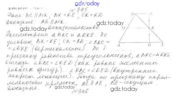 На страницах сайта gdz.today вы найдете учебный и вспомогательный материал, направленный на улучшения знаний школьной программы. ГДЗ - онлайн мир знаний §15. Свойства параллельных прямых Решение к главе 3. Параллельные прямые. Сумма углов треугольника 345 Учебнику по Геометрии для 7 класса Мерзляк, Полонский Вентана-граф Алгоритм успеха 2017