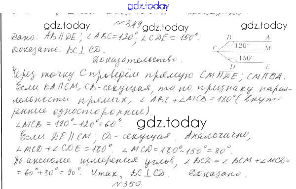 Ответы к §15. Свойства параллельных прямых Решение к главе 3. Параллельные прямые. Сумма углов треугольника 349 Учебнику по Геометрии для 7 класса Мерзляк, Полонский Вентана-граф Алгоритм успеха 2017