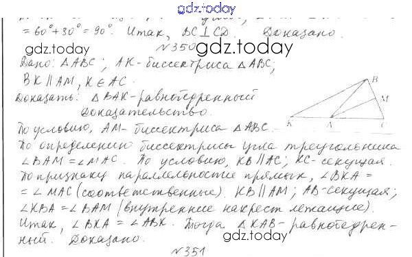 Ответы к §15. Свойства параллельных прямых Решение к главе 3. Параллельные прямые. Сумма углов треугольника 350 Учебнику по Геометрии для 7 класса Мерзляк, Полонский Вентана-граф Алгоритм успеха 2017