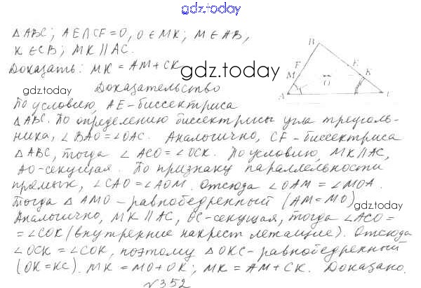 Ответы к §15. Свойства параллельных прямых Решение к главе 3. Параллельные прямые. Сумма углов треугольника 351 Учебнику по Геометрии для 7 класса Мерзляк, Полонский Вентана-граф Алгоритм успеха 2017