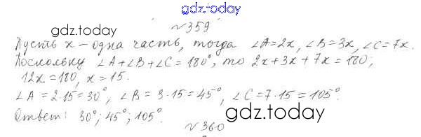 Ответы к §16. Сумма углов треугольника Решение к главе 3. Параллельные прямые. Сумма углов треугольника 359 Учебнику по Геометрии для 7 класса Мерзляк, Полонский Вентана-граф Алгоритм успеха 2017