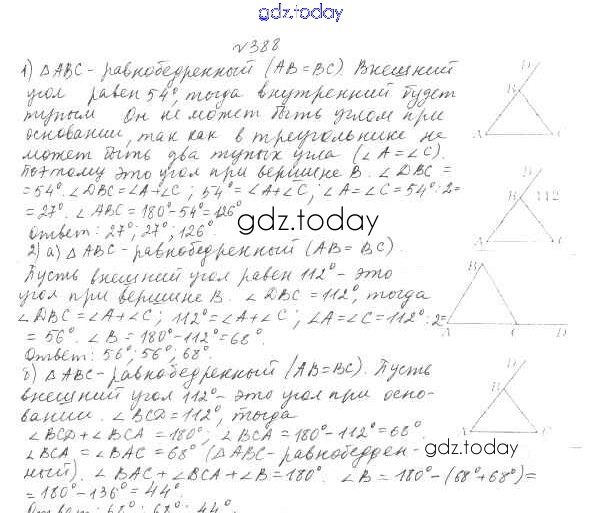 Ответы к §16. Сумма углов треугольника Решение к главе 3. Параллельные прямые. Сумма углов треугольника 388 Учебнику по Геометрии для 7 класса Мерзляк, Полонский Вентана-граф Алгоритм успеха 2017