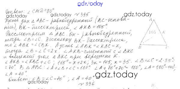 Ответы к §16. Сумма углов треугольника Решение к главе 3. Параллельные прямые. Сумма углов треугольника 395 Учебнику по Геометрии для 7 класса Мерзляк, Полонский Вентана-граф Алгоритм успеха 2017