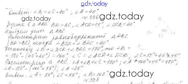 Ответы к §16. Сумма углов треугольника Решение к главе 3. Параллельные прямые. Сумма углов треугольника 396 Учебнику по Геометрии для 7 класса Мерзляк, Полонский Вентана-граф Алгоритм успеха 2017