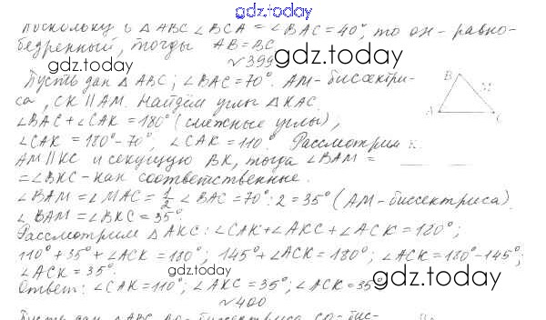 Ответы к §16. Сумма углов треугольника Решение к главе 3. Параллельные прямые. Сумма углов треугольника 399 Учебнику по Геометрии для 7 класса Мерзляк, Полонский Вентана-граф Алгоритм успеха 2017
