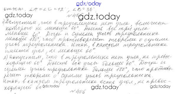 Ответы к §16. Сумма углов треугольника Решение к главе 3. Параллельные прямые. Сумма углов треугольника 405 Учебнику по Геометрии для 7 класса Мерзляк, Полонский Вентана-граф Алгоритм успеха 2017