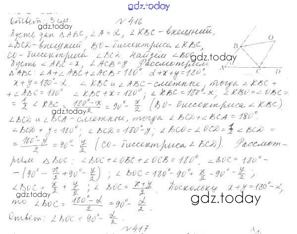 Ответы к §16. Сумма углов треугольника Решение к главе 3. Параллельные прямые. Сумма углов треугольника 416 Учебнику по Геометрии для 7 класса Мерзляк, Полонский Вентана-граф Алгоритм успеха 2017