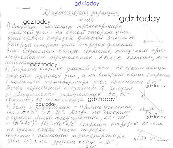 Ответы к §17. Прямоугольный треугольник Решение к главе 3. Параллельные прямые. Сумма углов треугольника 424 Учебнику по Геометрии для 7 класса Мерзляк, Полонский Вентана-граф Алгоритм успеха 2017