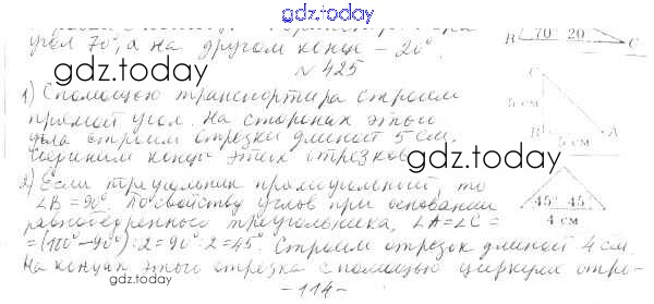 Ответы к §17. Прямоугольный треугольник Решение к главе 3. Параллельные прямые. Сумма углов треугольника 425 Учебнику по Геометрии для 7 класса Мерзляк, Полонский Вентана-граф Алгоритм успеха 2017