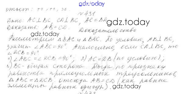 Ответы к §17. Прямоугольный треугольник Решение к главе 3. Параллельные прямые. Сумма углов треугольника 431 Учебнику по Геометрии для 7 класса Мерзляк, Полонский Вентана-граф Алгоритм успеха 2017