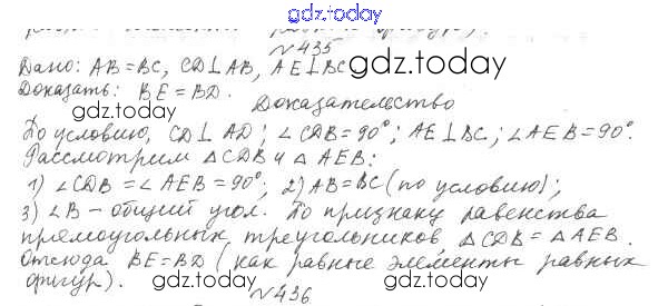 Ответы к §17. Прямоугольный треугольник Решение к главе 3. Параллельные прямые. Сумма углов треугольника 435 Учебнику по Геометрии для 7 класса Мерзляк, Полонский Вентана-граф Алгоритм успеха 2017