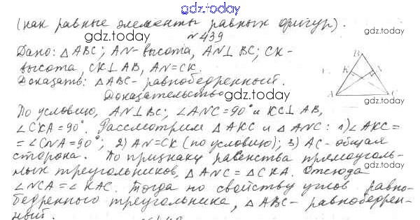 Ответы к §17. Прямоугольный треугольник Решение к главе 3. Параллельные прямые. Сумма углов треугольника 439 Учебнику по Геометрии для 7 класса Мерзляк, Полонский Вентана-граф Алгоритм успеха 2017