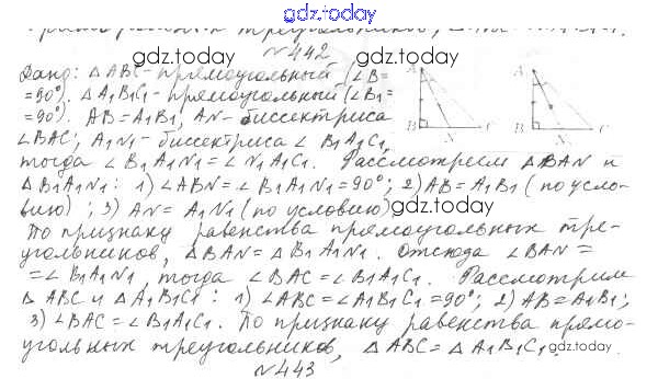Ответы к §17. Прямоугольный треугольник Решение к главе 3. Параллельные прямые. Сумма углов треугольника 442 Учебнику по Геометрии для 7 класса Мерзляк, Полонский Вентана-граф Алгоритм успеха 2017