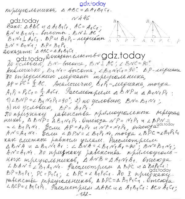 Ответы к §17. Прямоугольный треугольник Решение к главе 3. Параллельные прямые. Сумма углов треугольника 446 Учебнику по Геометрии для 7 класса Мерзляк, Полонский Вентана-граф Алгоритм успеха 2017