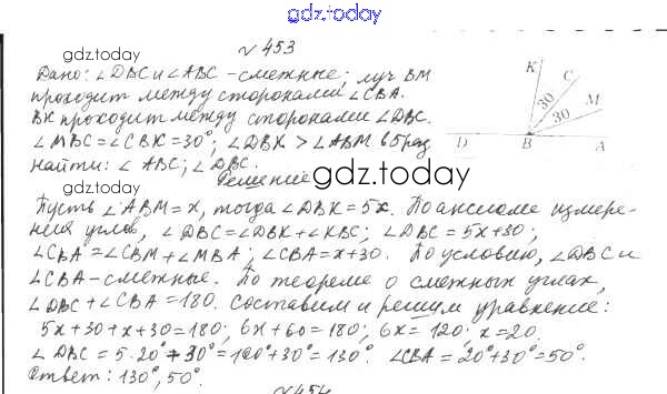 Ответы к §17. Прямоугольный треугольник Решение к главе 3. Параллельные прямые. Сумма углов треугольника 453 Учебнику по Геометрии для 7 класса Мерзляк, Полонский Вентана-граф Алгоритм успеха 2017