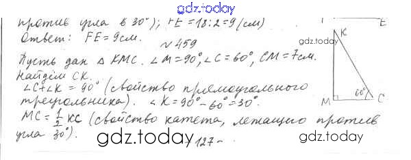 Ответы к §18. Свойства прямоугольного треугольника Решение к главе 3. Параллельные прямые. Сумма углов треугольника 459 Учебнику по Геометрии для 7 класса Мерзляк, Полонский Вентана-граф Алгоритм успеха 2017
