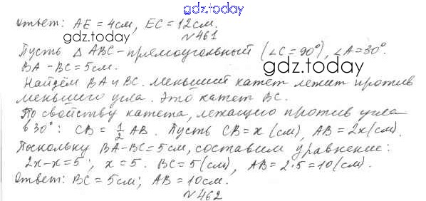 Ответы к §18. Свойства прямоугольного треугольника Решение к главе 3. Параллельные прямые. Сумма углов треугольника 461 Учебнику по Геометрии для 7 класса Мерзляк, Полонский Вентана-граф Алгоритм успеха 2017