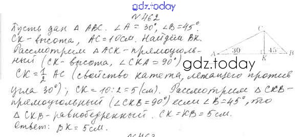 Ответы к §18. Свойства прямоугольного треугольника Решение к главе 3. Параллельные прямые. Сумма углов треугольника 462 Учебнику по Геометрии для 7 класса Мерзляк, Полонский Вентана-граф Алгоритм успеха 2017