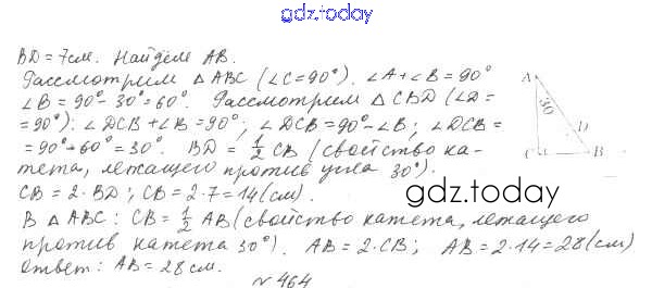 Ответы к §18. Свойства прямоугольного треугольника Решение к главе 3. Параллельные прямые. Сумма углов треугольника 463 Учебнику по Геометрии для 7 класса Мерзляк, Полонский Вентана-граф Алгоритм успеха 2017