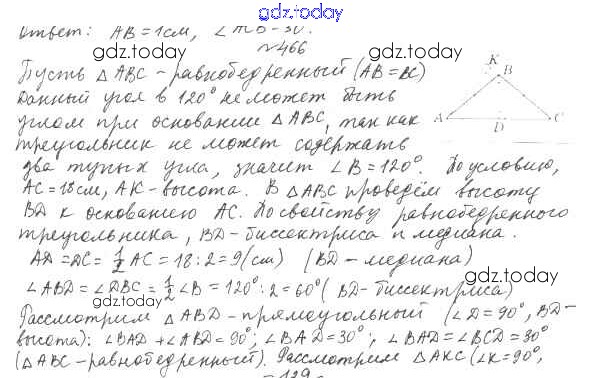 Ответы к §18. Свойства прямоугольного треугольника Решение к главе 3. Параллельные прямые. Сумма углов треугольника 466 Учебнику по Геометрии для 7 класса Мерзляк, Полонский Вентана-граф Алгоритм успеха 2017