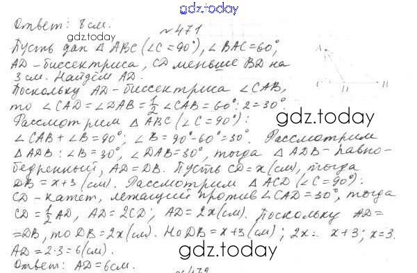 Ответы к §18. Свойства прямоугольного треугольника Решение к главе 3. Параллельные прямые. Сумма углов треугольника 471 Учебнику по Геометрии для 7 класса Мерзляк, Полонский Вентана-граф Алгоритм успеха 2017