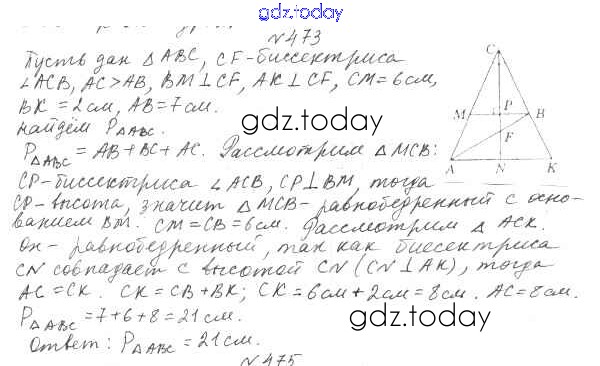 Ответы к §18. Свойства прямоугольного треугольника Решение к главе 3. Параллельные прямые. Сумма углов треугольника 473 Учебнику по Геометрии для 7 класса Мерзляк, Полонский Вентана-граф Алгоритм успеха 2017