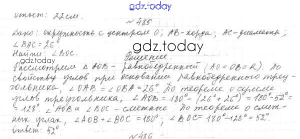 Ответы к §19. Геометрическое место точек. Окружность и круг Решение к главе 4. Окружность и круг. Геометрические построения 485 Учебнику по Геометрии для 7 класса Мерзляк, Полонский Вентана-граф Алгоритм успеха 2017