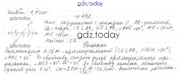 Ответы к §19. Геометрическое место точек. Окружность и круг Решение к главе 4. Окружность и круг. Геометрические построения 492 Учебнику по Геометрии для 7 класса Мерзляк, Полонский Вентана-граф Алгоритм успеха 2017