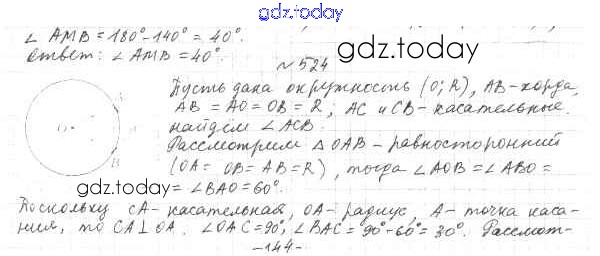 Ответы к §20. Некоторые свойства окружности. Касательная к окружности Решение к главе 4. Окружность и круг. Геометрические построения 524 Учебнику по Геометрии для 7 класса Мерзляк, Полонский Вентана-граф Алгоритм успеха 2017
