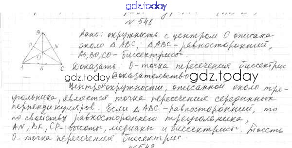 Ответы к §21. Описанная и вписанная окружности треугольника Решение к главе 4. Окружность и круг. Геометрические построения 548 Учебнику по Геометрии для 7 класса Мерзляк, Полонский Вентана-граф Алгоритм успеха 2017
