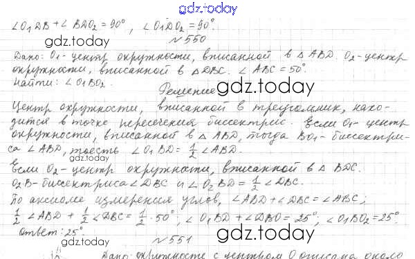Ответы к §21. Описанная и вписанная окружности треугольника Решение к главе 4. Окружность и круг. Геометрические построения 550 Учебнику по Геометрии для 7 класса Мерзляк, Полонский Вентана-граф Алгоритм успеха 2017
