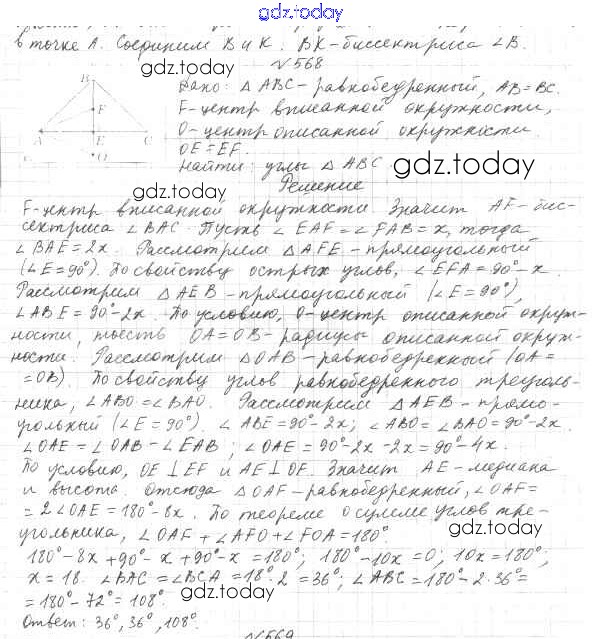 Ответы к §21. Описанная и вписанная окружности треугольника Решение к главе 4. Окружность и круг. Геометрические построения 568 Учебнику по Геометрии для 7 класса Мерзляк, Полонский Вентана-граф Алгоритм успеха 2017