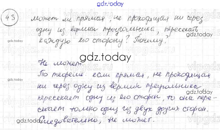 На страницах сайта gdz.today вы найдете учебный и вспомогательный материал, направленный на улучшения знаний школьной программы. ГДЗ - онлайн мир знаний Решение к §1. Основные свойства простейших геометрических фигур 43 Учебнику по Геометрии для 7-9 класса Погорелов Просвещение 2014