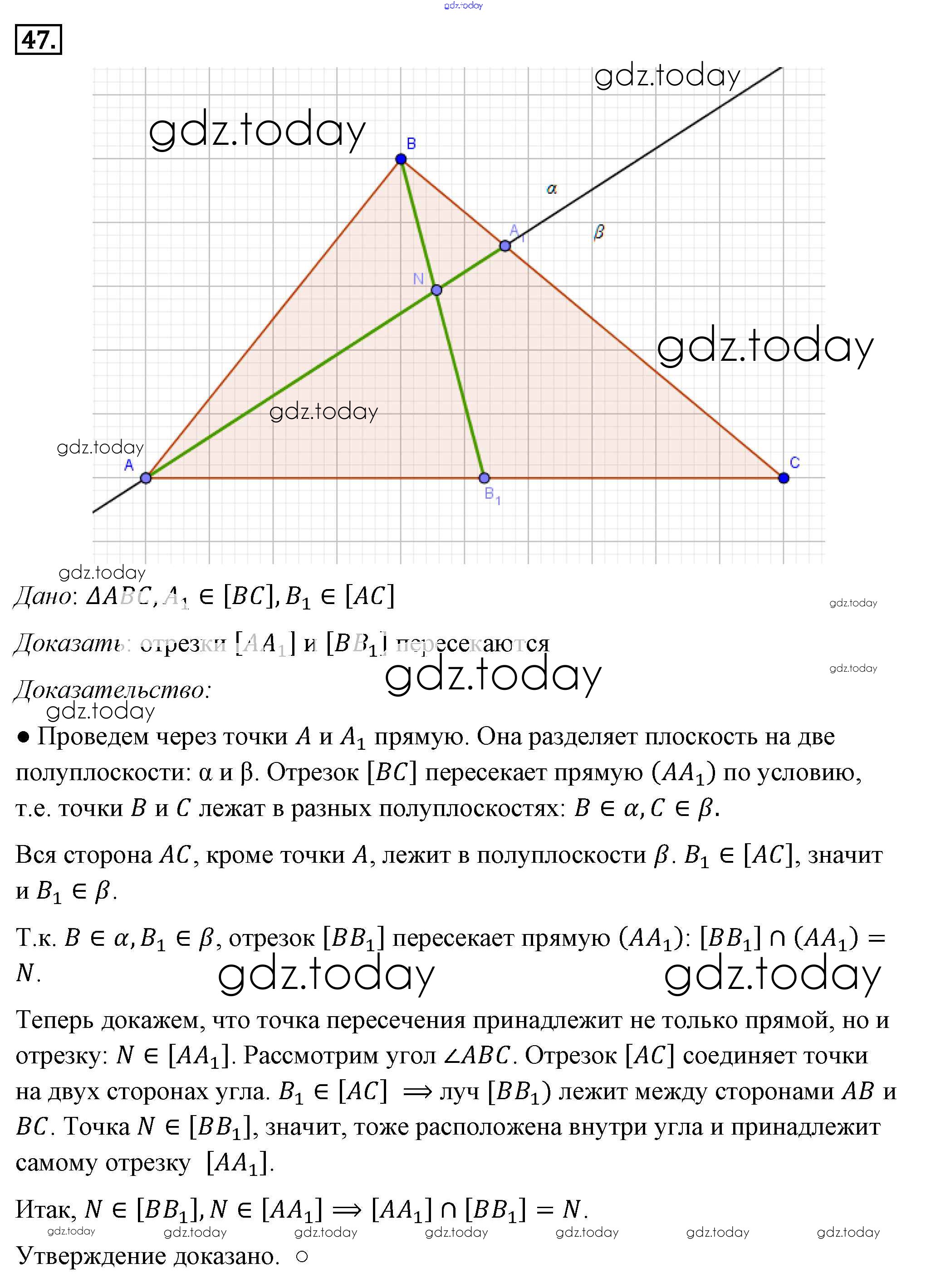 На страницах сайта gdz.today вы найдете учебный и вспомогательный материал, направленный на улучшения знаний школьной программы. ГДЗ - онлайн мир знаний Решение к §1. Основные свойства простейших геометрических фигур 47 Учебнику по Геометрии для 7-9 класса Погорелов Просвещение 2014