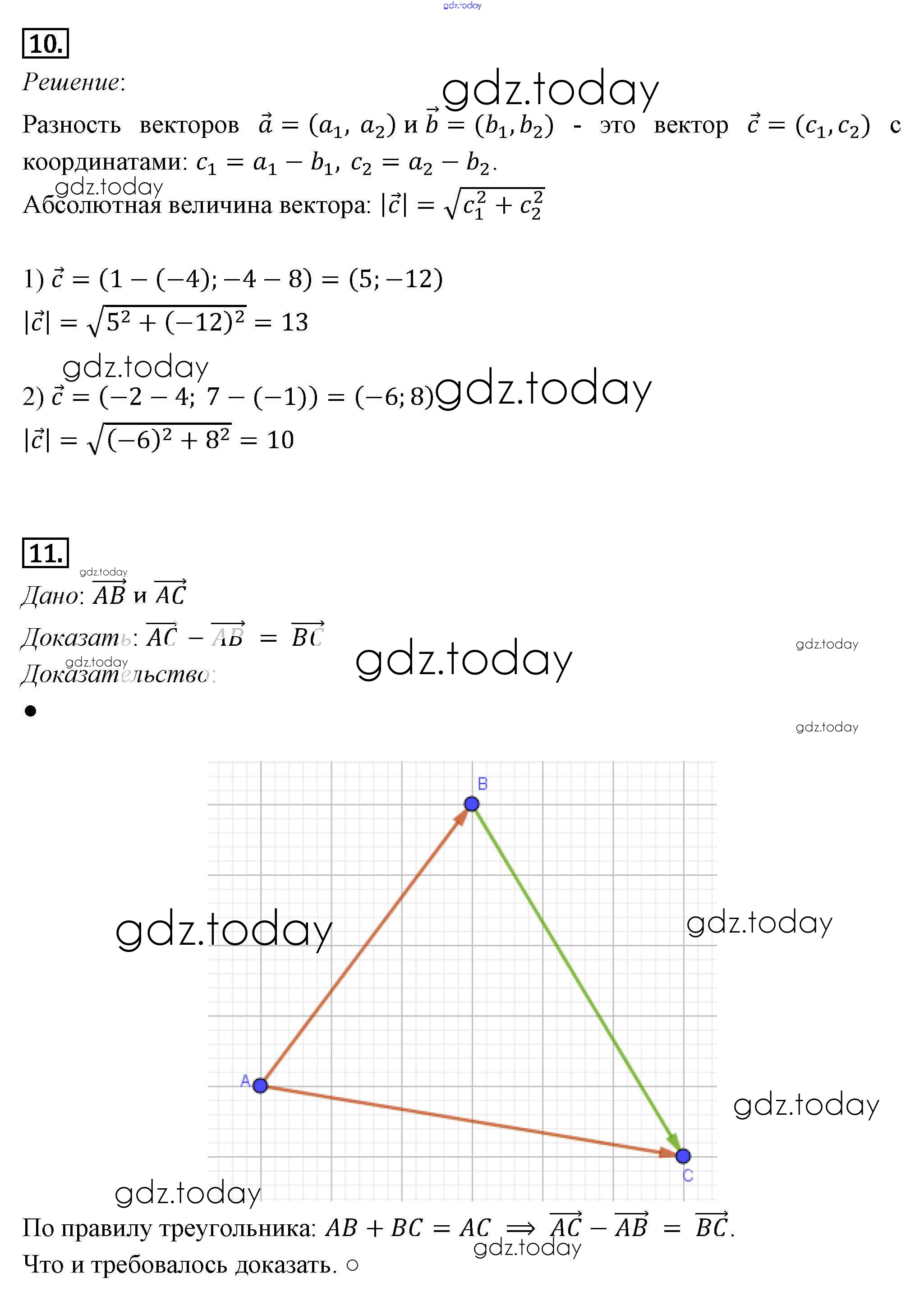 Ответы к Решение к §10. Векторы 10 Учебнику по Геометрии для 7-9 класса Погорелов Просвещение 2014