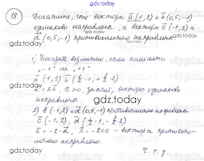 На страницах сайта gdz.today вы найдете учебный и вспомогательный материал, направленный на улучшения знаний школьной программы. ГДЗ - онлайн мир знаний Решение к §10. Векторы 18 Учебнику по Геометрии для 7-9 класса Погорелов Просвещение 2014