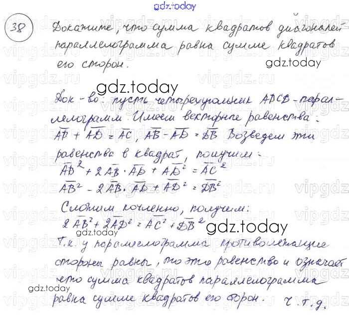 На страницах сайта gdz.today вы найдете учебный и вспомогательный материал, направленный на улучшения знаний школьной программы. ГДЗ - онлайн мир знаний Решение к §10. Векторы 38 Учебнику по Геометрии для 7-9 класса Погорелов Просвещение 2014