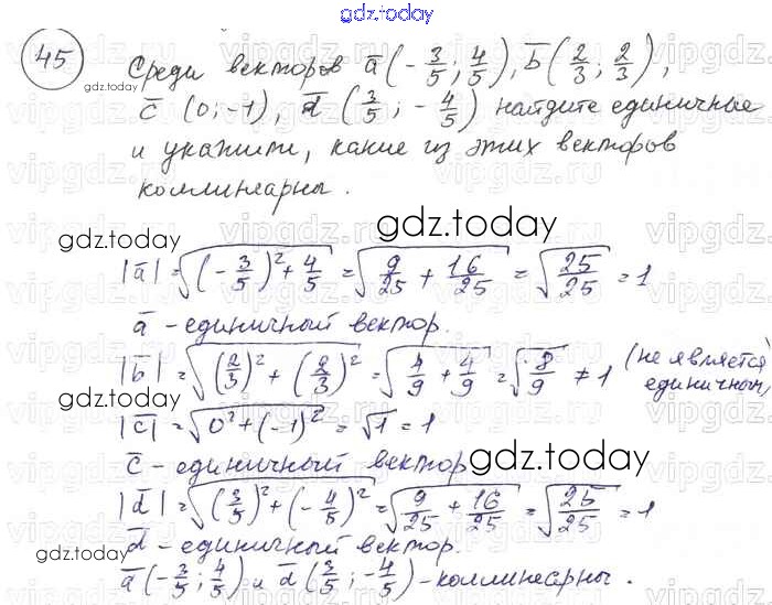 На страницах сайта gdz.today вы найдете учебный и вспомогательный материал, направленный на улучшения знаний школьной программы. ГДЗ - онлайн мир знаний Решение к §10. Векторы 45 Учебнику по Геометрии для 7-9 класса Погорелов Просвещение 2014