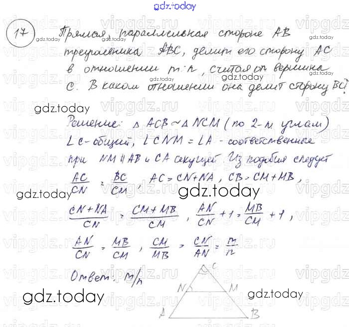 На страницах сайта gdz.today вы найдете учебный и вспомогательный материал, направленный на улучшения знаний школьной программы. ГДЗ - онлайн мир знаний Решение к §11. Подобие фигур 17 Учебнику по Геометрии для 7-9 класса Погорелов Просвещение 2014