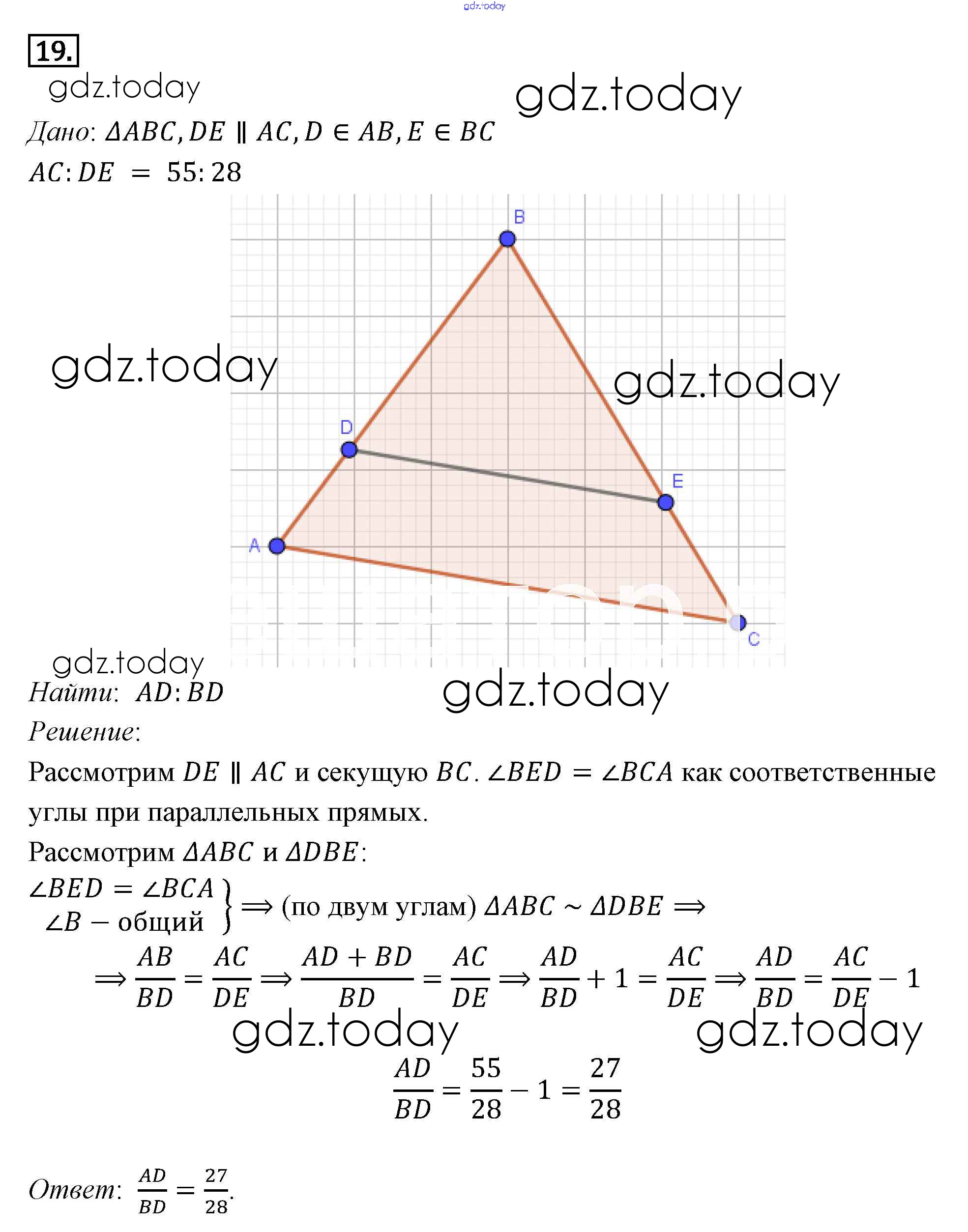 На страницах сайта gdz.today вы найдете учебный и вспомогательный материал, направленный на улучшения знаний школьной программы. ГДЗ - онлайн мир знаний Решение к §11. Подобие фигур 19 Учебнику по Геометрии для 7-9 класса Погорелов Просвещение 2014