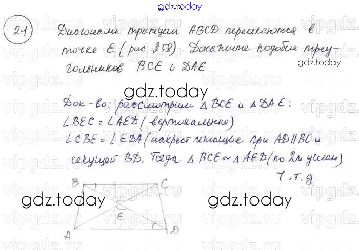 На страницах сайта gdz.today вы найдете учебный и вспомогательный материал, направленный на улучшения знаний школьной программы. ГДЗ - онлайн мир знаний Решение к §11. Подобие фигур 21 Учебнику по Геометрии для 7-9 класса Погорелов Просвещение 2014