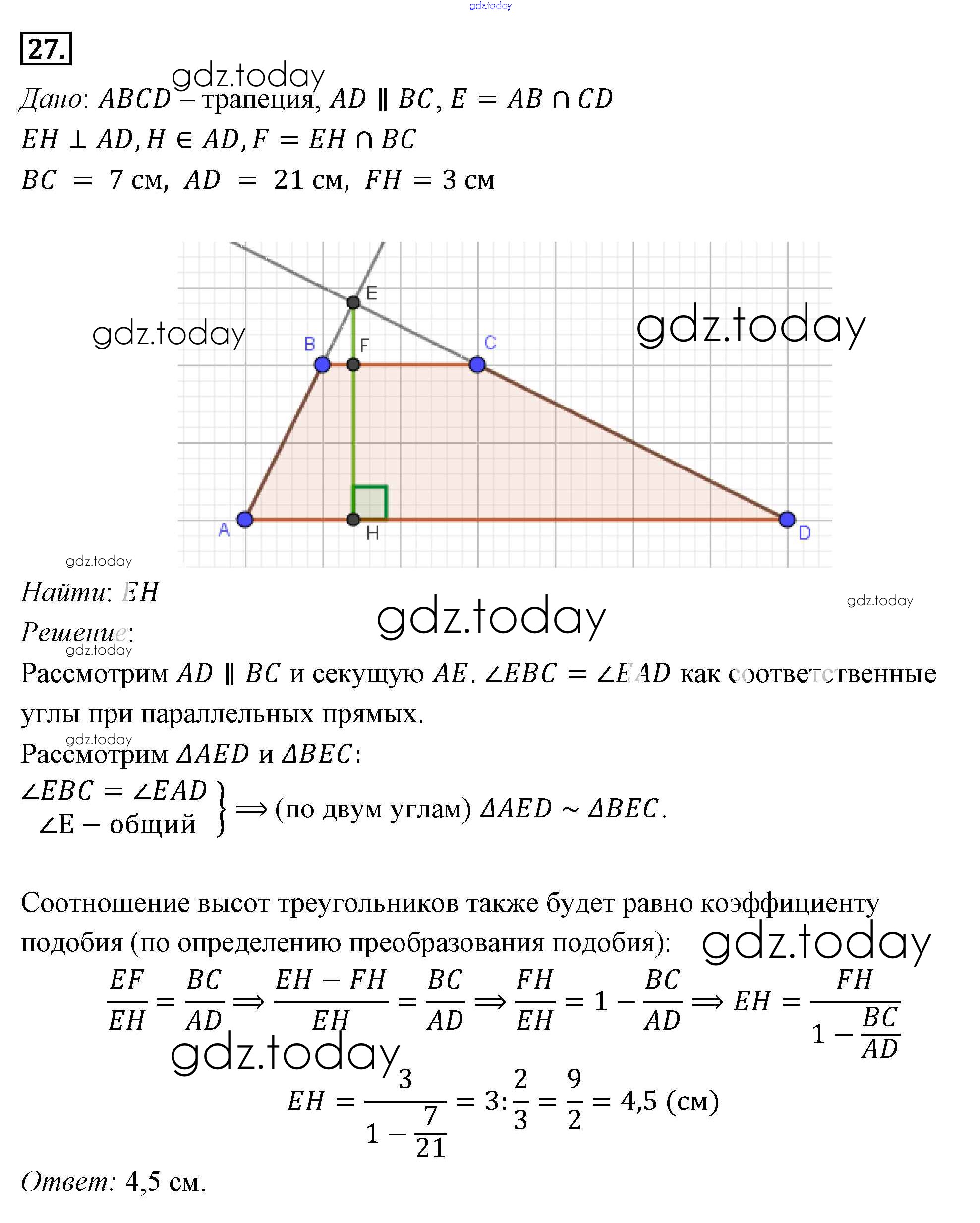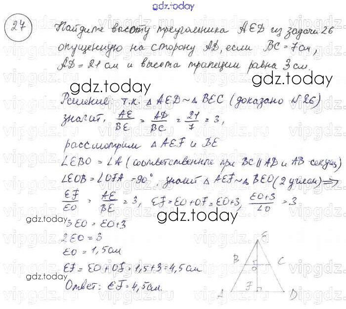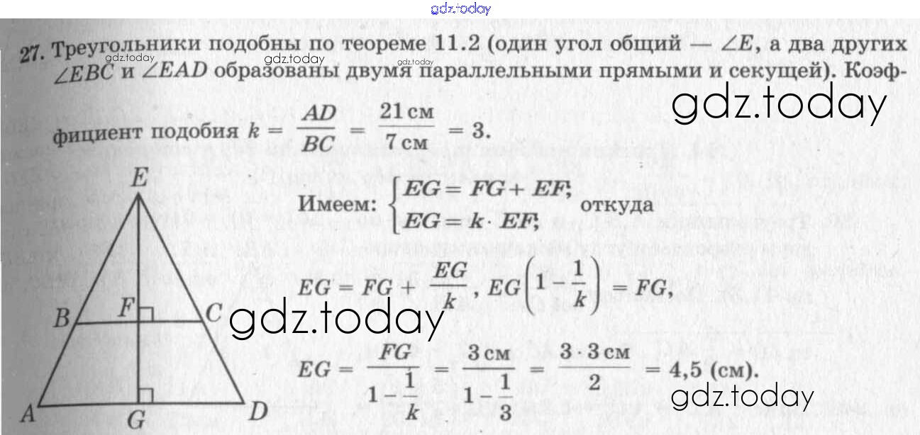 На страницах сайта gdz.today вы найдете учебный и вспомогательный материал, направленный на улучшения знаний школьной программы. ГДЗ - онлайн мир знаний Решение к §11. Подобие фигур 27 Учебнику по Геометрии для 7-9 класса Погорелов Просвещение 2014