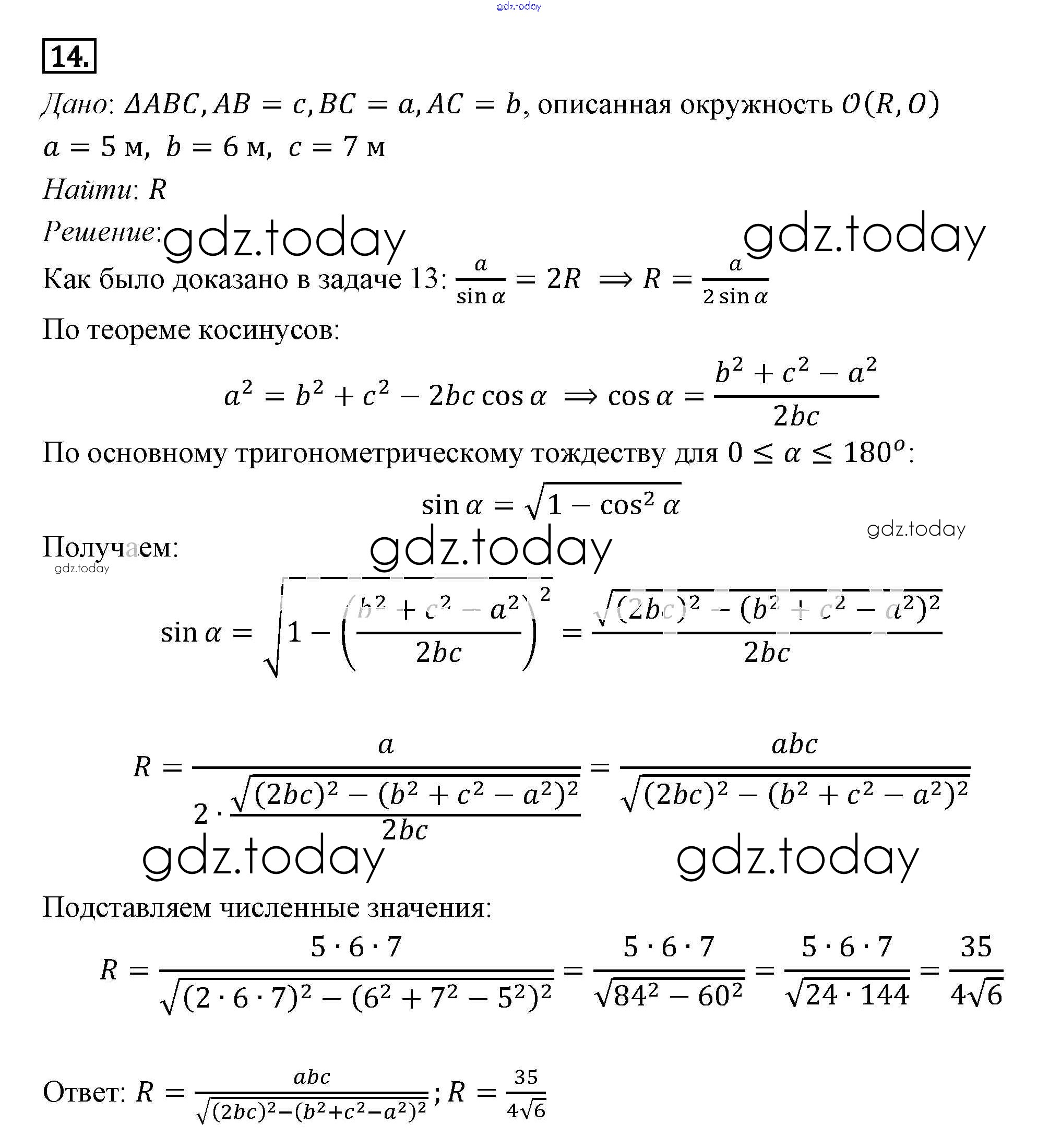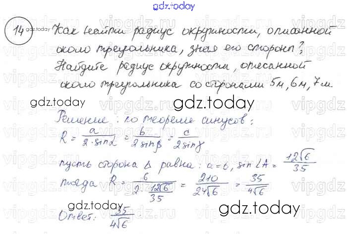 На страницах сайта gdz.today вы найдете учебный и вспомогательный материал, направленный на улучшения знаний школьной программы. ГДЗ - онлайн мир знаний Решение к §12. Решение треугольников 14 Учебнику по Геометрии для 7-9 класса Погорелов Просвещение 2014