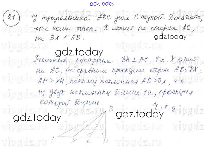 На страницах сайта gdz.today вы найдете учебный и вспомогательный материал, направленный на улучшения знаний школьной программы. ГДЗ - онлайн мир знаний Решение к §12. Решение треугольников 21 Учебнику по Геометрии для 7-9 класса Погорелов Просвещение 2014