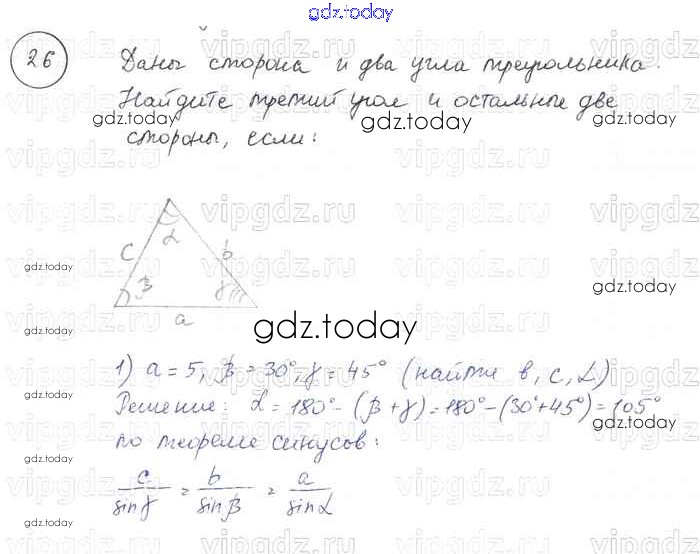 На страницах сайта gdz.today вы найдете учебный и вспомогательный материал, направленный на улучшения знаний школьной программы. ГДЗ - онлайн мир знаний Решение к §12. Решение треугольников 26 Учебнику по Геометрии для 7-9 класса Погорелов Просвещение 2014